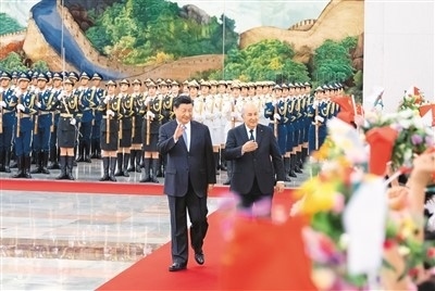 習近平指出,今年是中阿建交65周年。65年前,反對帝國主義和殖民主義、爭取民族獨立解放的共同事業(yè)使我們兩國走到一起。65年來,中國和阿爾及利亞始終患難與共、守望相助,相互理解、相互支持,是追求共同發(fā)展和民族振興道路上的真誠朋友、天然伙伴。中方正在以中國式現代化全面推進中華民族偉大復興,阿方正在著力推進建設“新阿爾及利亞”。中方愿同阿方一道努力,發(fā)揚光大傳統(tǒng)友誼,推動中阿全面戰(zhàn)略伙伴關系取得更大發(fā)展。