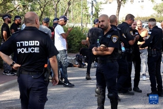 8月1日,在約旦河西岸猶太人定居點馬阿勒阿杜明,以色列警察在襲擊事件現(xiàn)場附近工作。新華社發(fā)(吉爾·科恩·馬根攝)