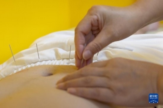 7月20日,在匈牙利布達(dá)佩斯匈牙利岐黃中醫(yī)藥中心,甘肅外派專家張海芳在為患者做針灸治療。新華社發(fā)(弗爾季·奧蒂洛攝)