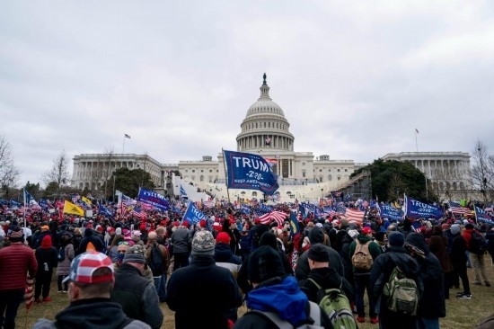 2021年1月6日,在美國首都華盛頓的國會大廈前,時任總統(tǒng)特朗普的支持者舉行示威游行。部分示威者沖擊國會大廈,導(dǎo)致國會參眾兩院認證總統(tǒng)選舉結(jié)果的聯(lián)席會議中斷數(shù)小時。事件造成4名示威者和1名國會警察死亡。新華社記者劉杰攝