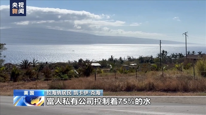 央視記者 劉旭:整個毛伊島都是異常干燥炎熱的天氣,所以在我旁邊也是連片枯草的景象。整個毛伊島西部地區(qū),包括拉海納地區(qū),淡水資源非常緊缺。當?shù)匾恍┚用竦纳钣盟窃趺磥淼哪??是在遠處山上地勢較高的地區(qū),有一些儲水設施或者蓄水池,把一些天然的降水和高山融水儲存起來,另外再通過地表徑流流經到生活的不同區(qū)域,很多當?shù)孛癖姇惭b這樣的水閥、水表把水引到自己的家中。在8月8日拉海納大火發(fā)生之后,當?shù)氐乃Y源使用權利也出現(xiàn)很多爭議。