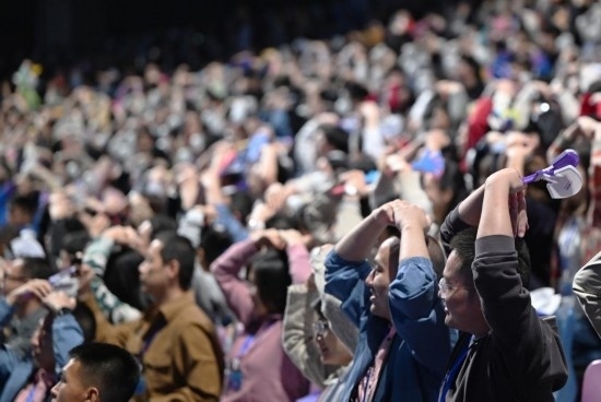 10月8日,觀眾在閉幕式上。當日,杭州第19屆亞洲運動會閉幕式在杭州奧體中心體育場舉行。(新華社記者陳鐘昊攝)