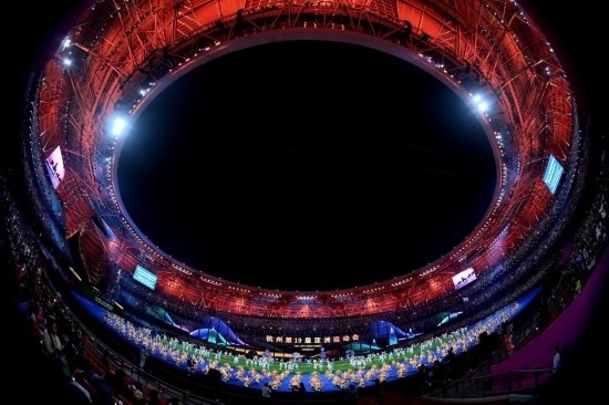 10月8日,演員在閉幕式上表演。當日,杭州第19屆亞洲運動會閉幕式在杭州奧體中心體育場舉行。(新華社記者黃宗治攝)