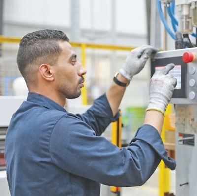 在中?!ぬ┻_蘇伊士經(jīng)貿(mào)合作區(qū)內(nèi),當?shù)毓と嗽诓僮髟O(shè)備。本報記者 張志文攝