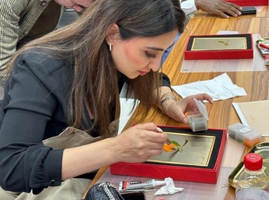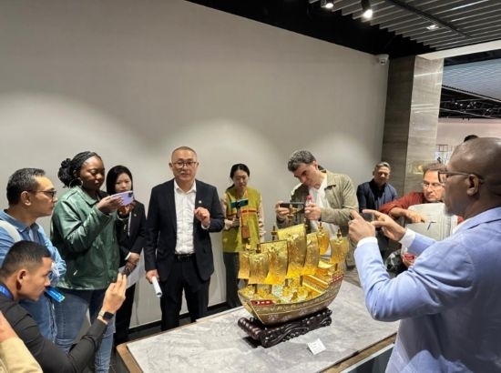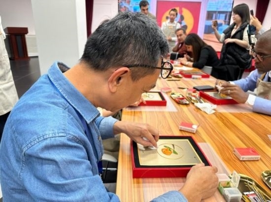 嘉賓在中國(guó)工藝集團(tuán)體驗(yàn)景泰藍(lán)制作過程 (新華社記者王艷剛攝)
