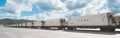 冷藏貨運(yùn)班列駛?cè)胫袊?guó)磨憨鐵路口岸。