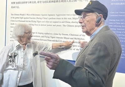 走進(jìn)博物館,代表團(tuán)成員在一張張老照片、一件件珍貴實物前流連,認(rèn)真聆聽講解,還不時與身邊親友交談。麥克馬倫在展板上看到自己的名字后,興奮地向妻子珍妮弗指了指名字的位置。他曾擔(dān)任B—24轟炸機(jī)機(jī)頭炮手和助理飛行機(jī)械師,在昆明和成都參加對日作戰(zhàn)。看著玻璃柜里的展品,他感慨:“美中兩國人民的友誼將延綿不斷?!?/p>