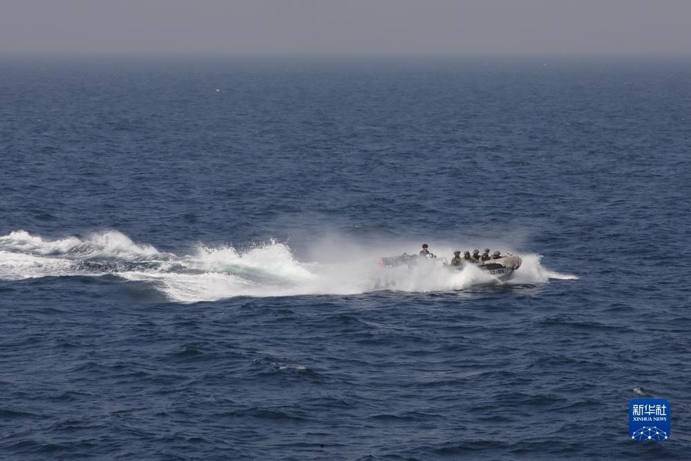 中巴“海洋衛(wèi)士-3”海上聯(lián)合演習(xí)在阿拉伯海北部海空域舉行,中國(guó)海軍荊州艦特戰(zhàn)隊(duì)員在臨檢拿捕演練中乘小艇前出(11月14日攝)。新華社發(fā)(姜霞攝)
