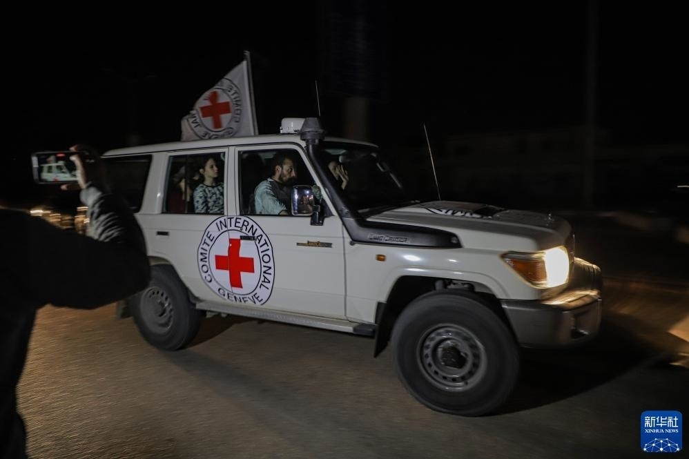 11月25日,紅十字國際委員會工作人員將被釋放人員送往加沙地帶南部拉法口岸。新華社發(fā)(里澤克·阿卜杜勒賈瓦德攝)