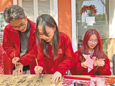 12月8日,在河內(nèi)大學(xué)孔子學(xué)院舉行的文化體驗(yàn)活動(dòng)中,越南大學(xué)生體驗(yàn)中國書法和剪紙。本報(bào)記者 張遠(yuǎn)南攝