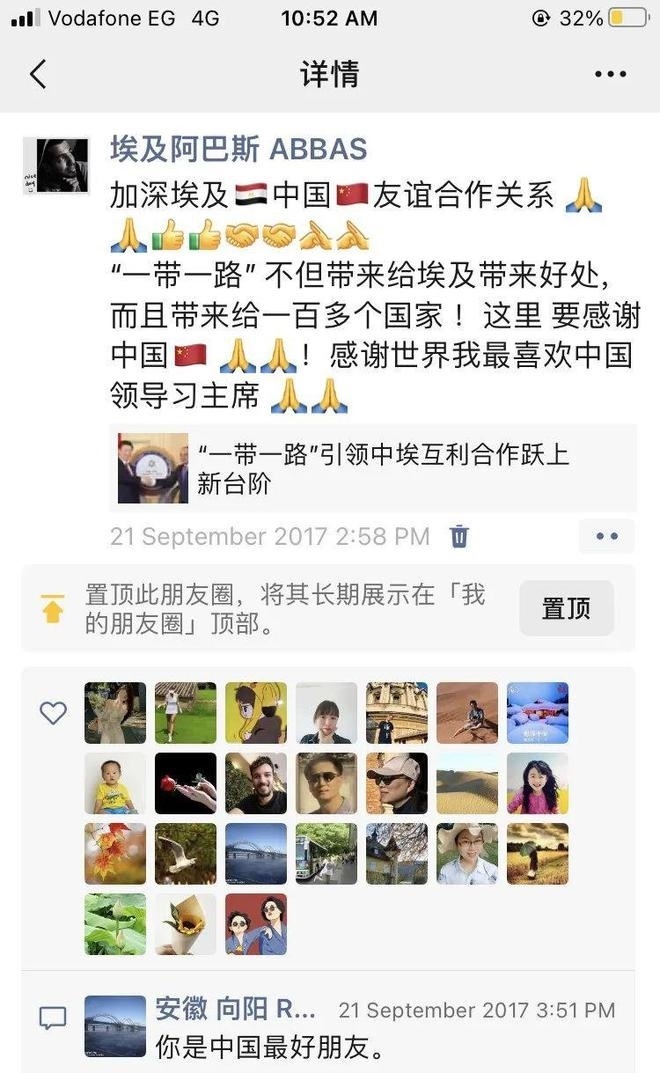 “習(xí)近平主席說過:‘國之交在于民相親,民相親在于心相通?!挥忻裥南嗤ǎ拍芑ハ鄮椭?、互相支持。如果形同陌路,我們還能談什么?如果相互心存芥蒂,我們還能做什么?”最近,阿巴斯正在研究一個中文詞:鏈接。“同為文明古國,埃及和中國早在2000多年前就有了友好交往,這是歷史上的‘鏈接’。中國提出共建‘一帶一路’倡議,這是當(dāng)代的‘鏈接’,讓古老的絲綢之路煥發(fā)新的光彩。中國積極與世界各國攜手合作、互利共贏,在近期動蕩的國際環(huán)境下,相信人們會更加理解共建‘一帶一路’倡議的價值和內(nèi)涵。”