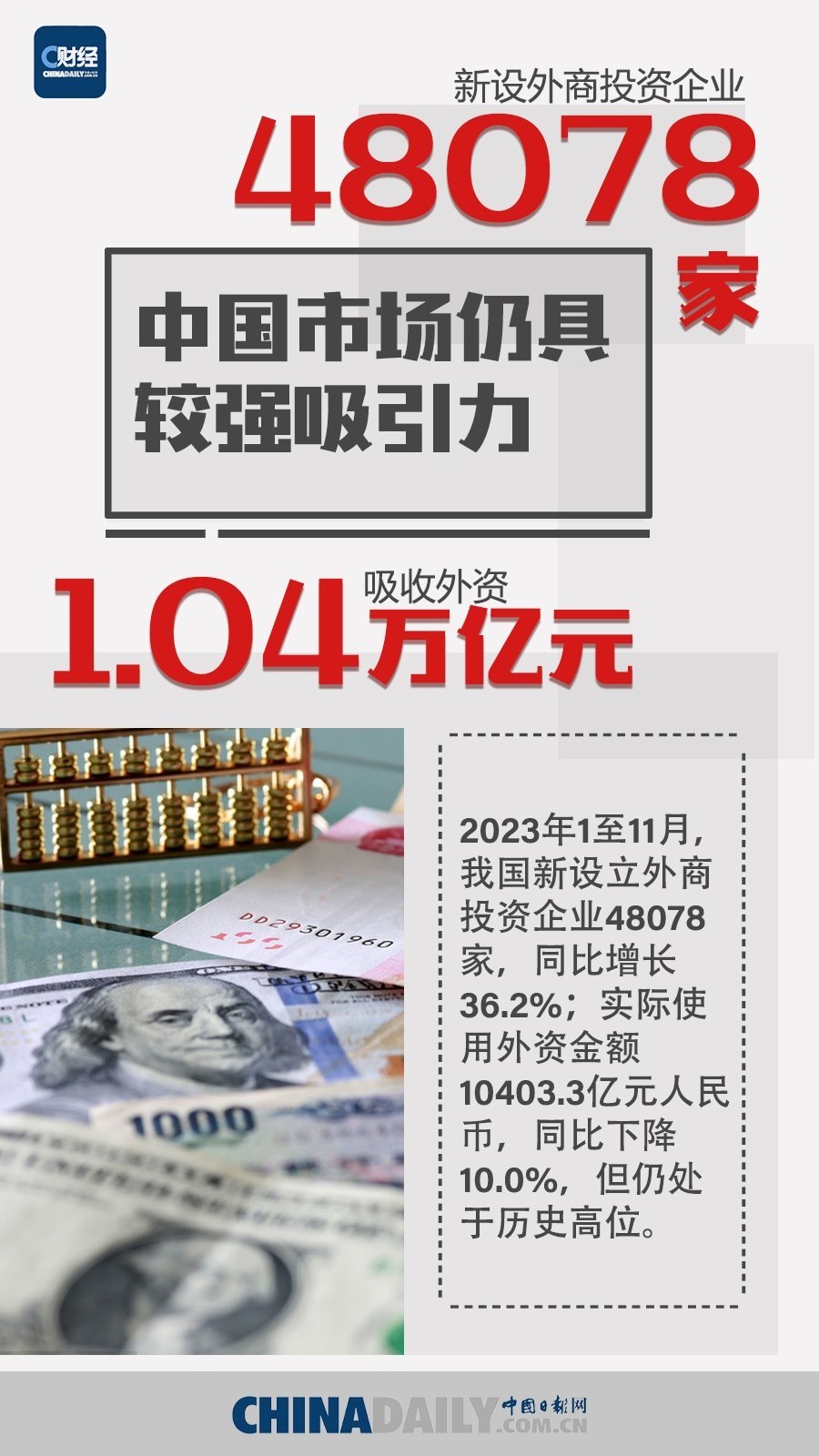 2023年,在世界經(jīng)濟(jì)復(fù)蘇乏力、全球貿(mào)易增長(zhǎng)持續(xù)低迷的情況下,中國外貿(mào)發(fā)展頂住壓力,促穩(wěn)提質(zhì),外貿(mào)新產(chǎn)品、新業(yè)態(tài)的潛力持續(xù)釋放。與此同時(shí),我國外資政策效應(yīng)逐步顯現(xiàn),吸引外資的結(jié)構(gòu)持續(xù)優(yōu)化,外資企業(yè)來華投資勢(shì)頭不減。