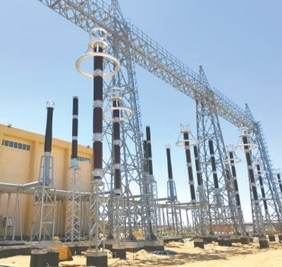 位于蘇伊士省的埃克薩迪亞500千伏變電站項目現(xiàn)場,鐵塔高聳,一條條高壓輸電導(dǎo)線接入變電站設(shè)備,電流通過導(dǎo)線時發(fā)出嗡嗡聲。