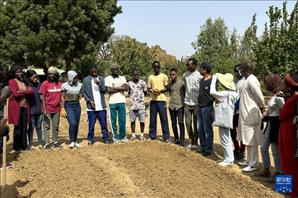 2024年2月22日,在塞內(nèi)加爾達喀爾大學孔子學院農(nóng)業(yè)科技園內(nèi),中國農(nóng)技組專家為當?shù)貙W生授課并現(xiàn)場指導實踐。新華社發(fā)(達喀爾大學孔子學院供圖)