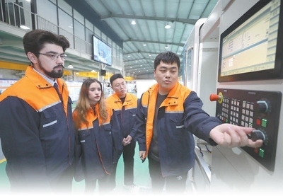 沈陽(yáng)工學(xué)院與武漢華中數(shù)控股份有限公司共同建設(shè)“一帶一路”訂單班,聯(lián)合培養(yǎng)行業(yè)急需的“專業(yè)+俄語”高素質(zhì)應(yīng)用型人才,訂單班學(xué)生畢業(yè)后將回國(guó)從事數(shù)控技術(shù)相關(guān)工作,實(shí)現(xiàn)高質(zhì)量就業(yè)。圖為中國(guó)同學(xué)和留學(xué)生分享操作經(jīng)驗(yàn)。新華社記者 ?楊 ?青攝