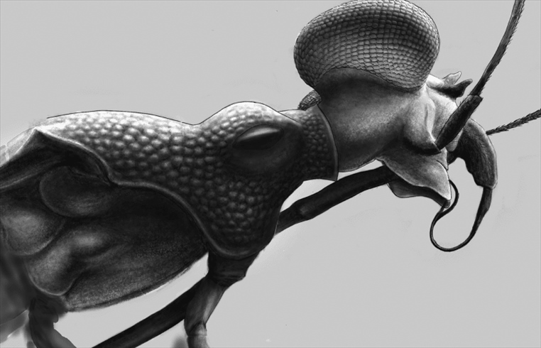 聲明說,研究人員在研究采自緬甸北部山谷一個琥珀礦的白堊紀(jì)中期化石標(biāo)本時發(fā)現(xiàn)了一種昆蟲,其眼睛尺寸異常大,體色圖案復(fù)雜,且有明顯擴(kuò)展的盾片。此外,它的翅膀上有獨(dú)立的前緣脈和亞前緣脈。研究人員認(rèn)為,這種昆蟲的顏色和獨(dú)特形狀也許可以威懾捕食者。