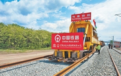 近日,在塞爾維亞和匈牙利邊境地區(qū)的塞爾維亞一側(cè),匈塞鐵路項(xiàng)目施工人員利用鋪軌車(chē)等中國(guó)設(shè)備進(jìn)行鋪軌作業(yè)。