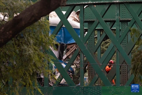 5月10日,救援人員在阿根廷首都布宜諾斯艾利斯火車(chē)相撞事故現(xiàn)場(chǎng)工作。新華社發(fā)(馬丁·薩巴拉攝)