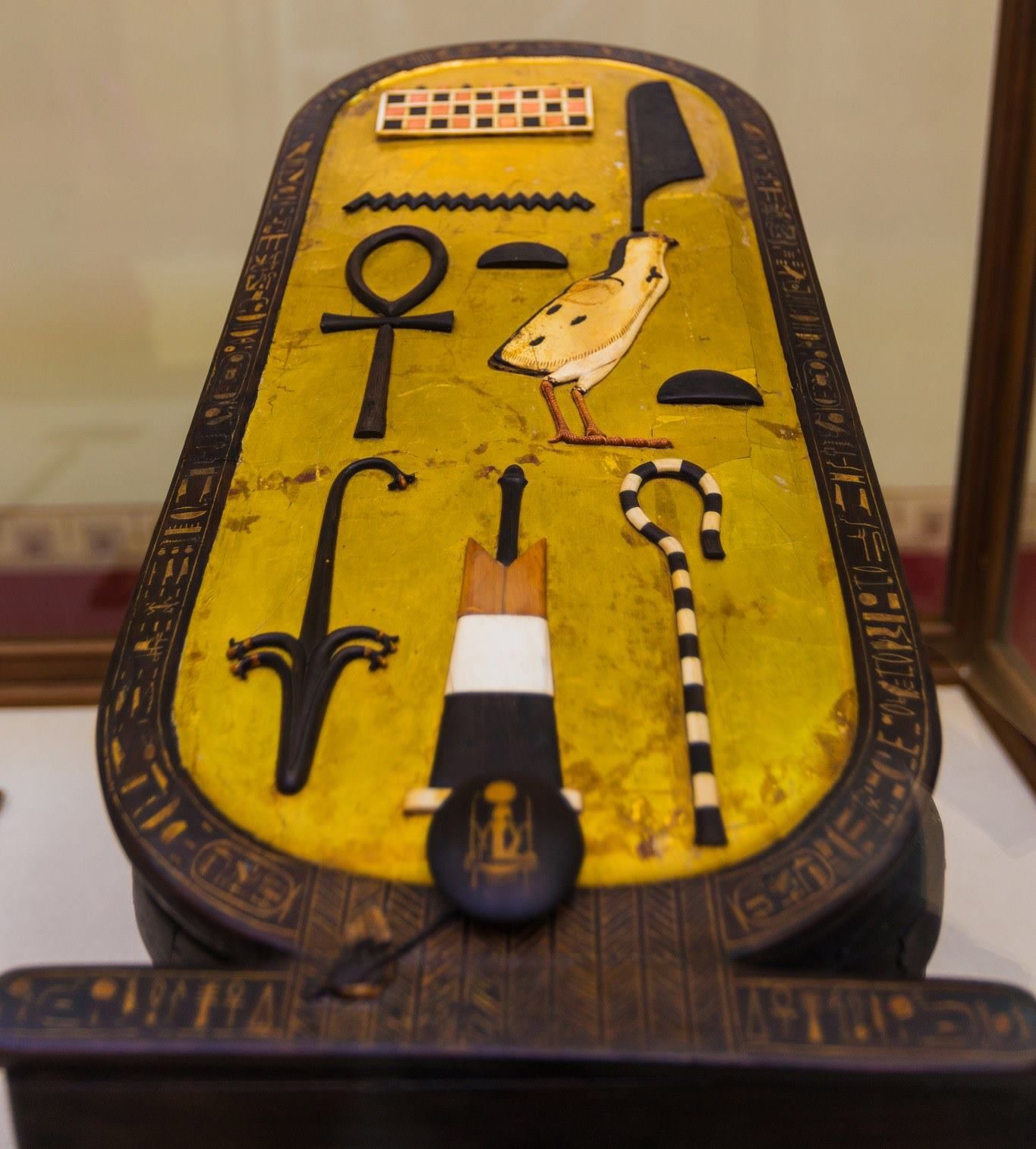 埃及博物館陳列的用象形文字寫(xiě)的法老圖坦卡蒙的金牌