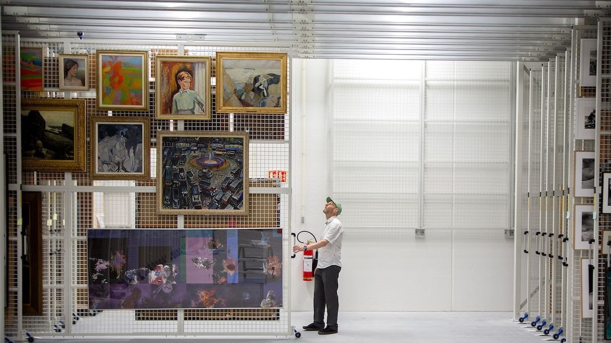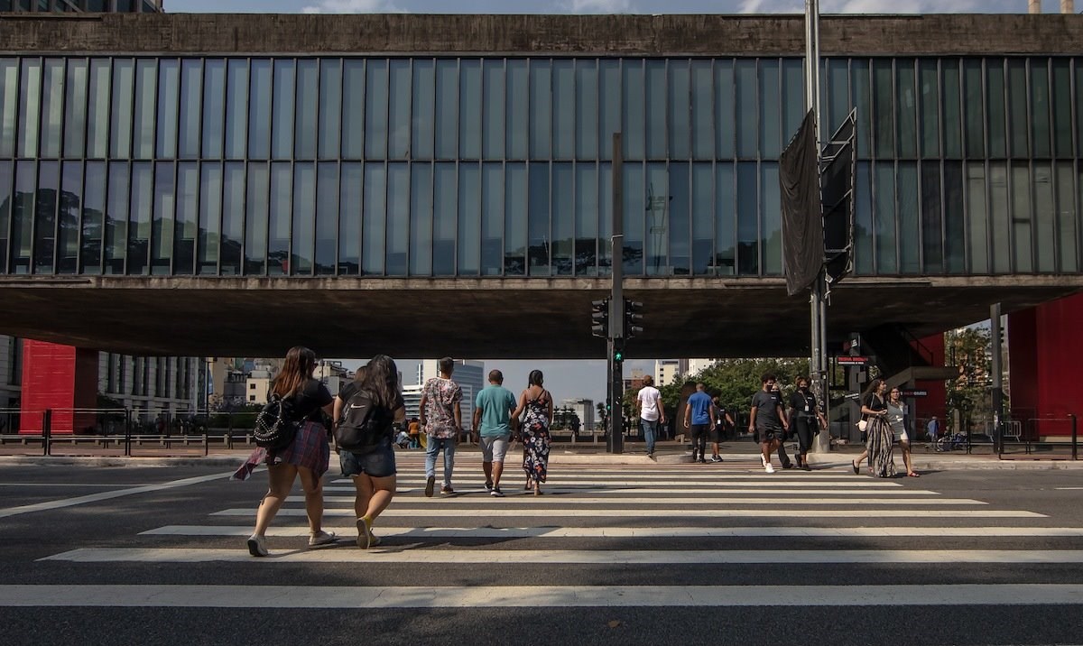 參觀(guān)者正在圣保羅藝術(shù)博物館瀏覽藝術(shù)展品