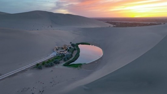 這是6月6日拍攝的鳴沙山月牙泉(無人機(jī)照片)。新華社記者 郎兵兵 攝
