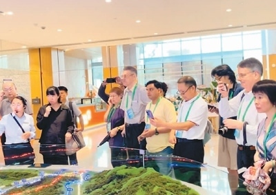本次論壇還組織與會(huì)嘉賓前往浙江省安吉縣余村實(shí)地參觀考察。圖為中外嘉賓在余村了解當(dāng)?shù)貜摹翱可匠陨健钡健案簧金B(yǎng)山”的綠色發(fā)展之路。本報(bào)記者 孫亞慧攝