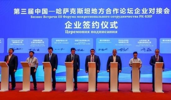 新疆維吾爾自治區(qū)商務(wù)廳負(fù)責(zé)人介紹,在本次論壇的企業(yè)對(duì)接會(huì)上,兩國(guó)企業(yè)共達(dá)成17個(gè)簽約項(xiàng)目,涉及木材加工、商貿(mào)物流中心建設(shè)、建材、旅游、裝備制造等方面,簽約金額約6.29億美元。他還表示,中國(guó)品牌的汽車、手機(jī)、家用電器在哈薩克斯坦廣受歡迎,哈薩克斯坦生產(chǎn)的綠色優(yōu)質(zhì)農(nóng)產(chǎn)品也越來越為中國(guó)消費(fèi)者所熟知。