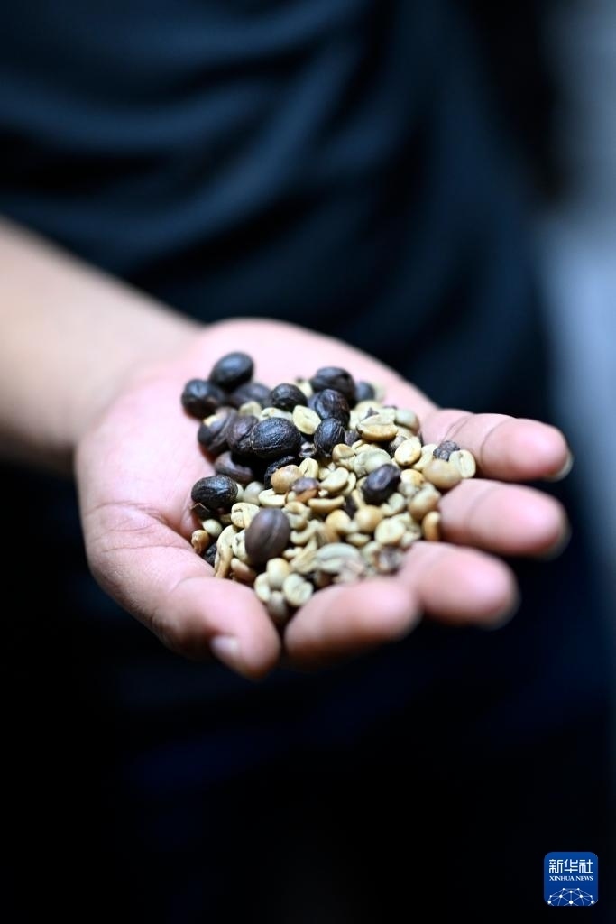 8月26日,在巴拿馬西部城市博克特的拉馬斯圖斯莊園,工作人員展示瑰夏咖啡豆。