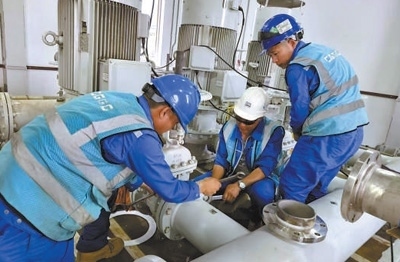 穆巴希爾手拿巡檢單,穿過縱橫的管道,仔細檢查海水淡化設備的運轉情況。作為阿聯(lián)酋烏姆蓋萬海水淡化項目的現(xiàn)場工程師,穆巴希爾每天上班的第一件事就是進行現(xiàn)場巡查,及時處理異常情況?!拔覀兊么_保提供穩(wěn)定、清潔、優(yōu)質的生活用水。”他說。