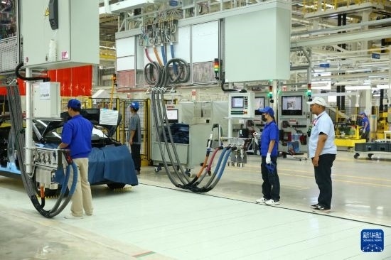7月4日,工人在位于泰國羅勇府的比亞迪泰國工廠工作。新華社記者 孫瑋彤 攝