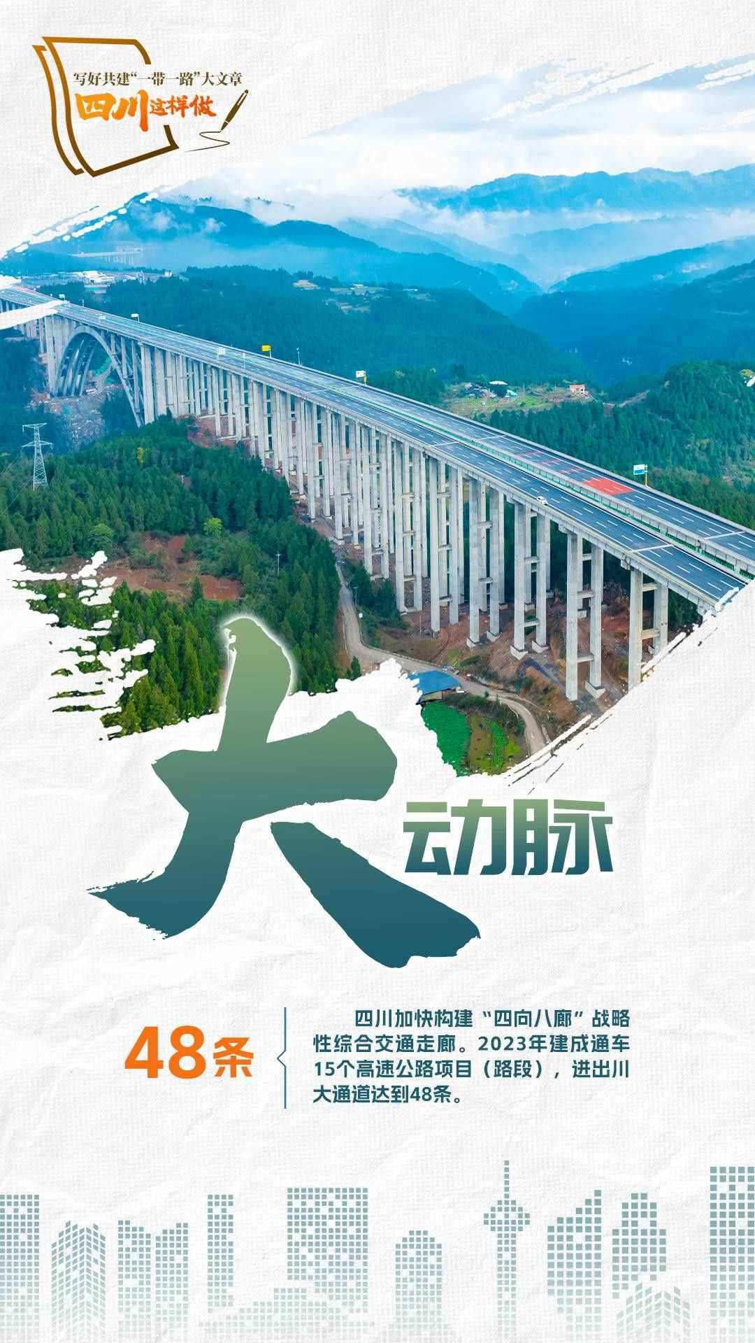 2023年,共建“一帶一路”走過(guò)第一個(gè)蓬勃十年,積極奔向更富活力的第二個(gè)“金色十年”。為推動(dòng)共建“一帶一路”更高質(zhì)量、更高水平發(fā)展,宣布中國(guó)支持高質(zhì)量共建“一帶一路”的八項(xiàng)行動(dòng),包括構(gòu)建“一帶一路”立體互聯(lián)互通網(wǎng)絡(luò)、支持建設(shè)開(kāi)放型世界經(jīng)濟(jì)、開(kāi)展務(wù)實(shí)合作、促進(jìn)綠色發(fā)展、推動(dòng)科技創(chuàng)新、支持民間交往、建設(shè)廉潔之路、完善“一帶一路”國(guó)際合作機(jī)制。2024年,我們將目光聚焦四川,作為內(nèi)陸開(kāi)放的前沿陣地、西部大開(kāi)發(fā)的戰(zhàn)略依托,看看第二個(gè)十年,四川如何寫(xiě)好高質(zhì)量共建“一帶一路”大文章。