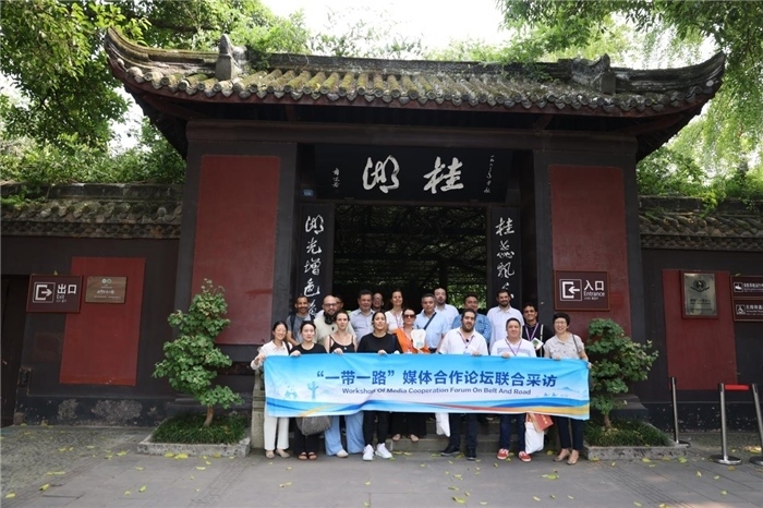 紫藤纏繞,荷葉連綿,位于四川成都新都區(qū)的桂湖公園一片綠意盎然。桂湖公園始建于隋唐時(shí)期,是一座自然環(huán)境幽雅、人文底蘊(yùn)深厚的古典園林。8月30日,2024年“一帶一路”媒體合作論壇拉美媒體采訪團(tuán)來到這里參觀。