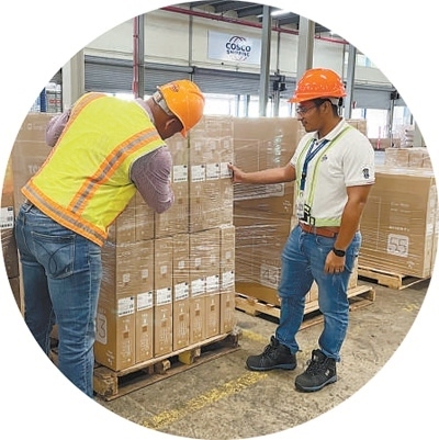 “海運(yùn)+海外倉”是中遠(yuǎn)海運(yùn)探索出的“一站式”全程綜合物流服務(wù)模式,集海運(yùn)、倉儲、報(bào)關(guān)等服務(wù)于一體。圖為在巴拿馬科隆自由貿(mào)易區(qū)內(nèi)的中遠(yuǎn)海運(yùn)海外倉,工作人員對抵達(dá)的貨物進(jìn)行質(zhì)檢??逅埂ぐ嗟夏釘z