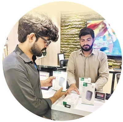 中國企業(yè)位于巴基斯坦的海外倉將中國制造的數(shù)碼產(chǎn)品等高附加值貨物快速配送至本地線下零售商網(wǎng)絡(luò),顯著提升效率和靈活性。圖為海外倉的送貨員正在與當(dāng)?shù)厣虘艚唤迂浳?。本?bào)巴基斯坦分社 賽義德·邁赫迪攝