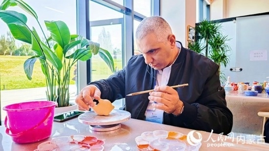 “今天是第一次體驗(yàn)?zāi)嗨?,在老師的幫助下我們做了一個(gè)碗,我覺得很有意思,我會(huì)把它帶回家鄉(xiāng),展示給我的朋友們?!卑<坝浾唏R贊·伊斯蘭姆完成了自己的第一個(gè)泥塑作品,成就感滿滿。呼和浩特雕塑藝術(shù)館的體驗(yàn)之旅也給他留下了深刻的印象,“呼和浩特有著豐富的歷史文化,很高興能有機(jī)會(huì)體驗(yàn)了解,我認(rèn)為這可以吸引很多游客來這里游覽。我們國(guó)家也有著豐富的歷史文化,我們兩國(guó)有很多共同點(diǎn),我覺得文化交流能推動(dòng)我們的合作關(guān)系邁向新的階段?!?/p>
