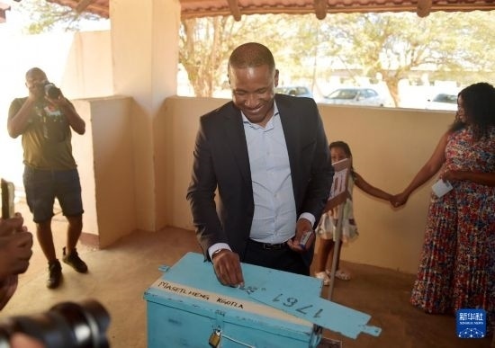 10月30日,博茨瓦納現(xiàn)任總統(tǒng)、民主黨候選人馬西西在南部區(qū)莫舒帕村的一處投票站投票。新華社發(fā)(恩古貝瓦納攝)