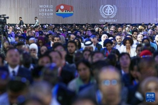 11月4日,人們在埃及首都開羅參加第12屆世界城市論壇開幕式。新華社發(fā)(艾哈邁德·戈馬攝)
