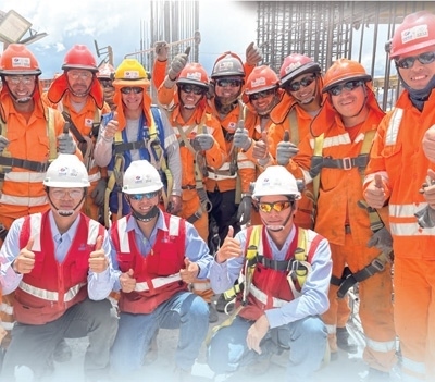 在中企承建的秘魯庫斯科圣安東尼奧國立大學(xué)升級(jí)改造項(xiàng)目施工現(xiàn)場,中秘兩國建設(shè)者合影。水 源攝