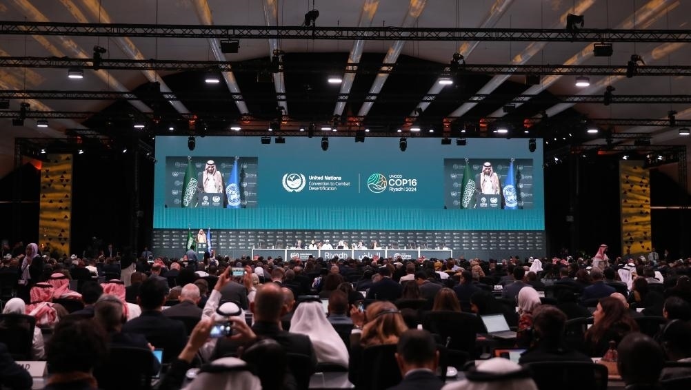 12月2日,與會(huì)者在沙特阿拉伯首都利雅得出席《聯(lián)合國(guó)防治荒漠化公約》第十六次締約方大會(huì)開(kāi)幕式。新華社記者王東震攝