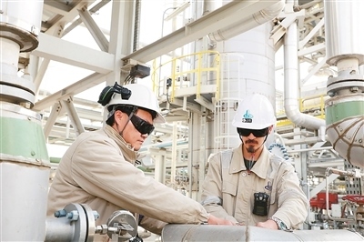 伊拉克哈法亞天然氣處理廠項目由中國石油工程建設(shè)有限公司承建,主要功能是收集和處理哈法亞油田3個中心油氣處理廠的伴生氣和凝析液,有效減少該地區(qū)油田伴生氣放空燃燒,從而保護環(huán)境。圖為中方技術(shù)人員帶領(lǐng)當(dāng)?shù)貑T工對現(xiàn)場調(diào)節(jié)閥進行檢測。