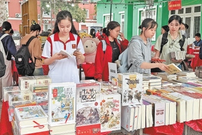 4月9日,越南河內大學孔子學院學生在翻閱越南語版的中國傳統(tǒng)經典名著。