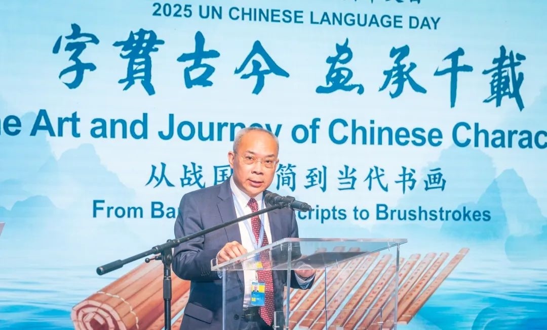 此次中文日活動以“字貫古今 畫承千載——從戰(zhàn)國竹簡到當代書畫”為主題,由中國常駐維也納代表團、聯(lián)合國維也納辦事處主辦,中央數(shù)字電視書畫頻道、清華大學、安徽大學、吉林大學協(xié)辦,共同為維也納聯(lián)合國總部獻上了一場中國文化盛宴。清華大學副校長彭剛、中央數(shù)字電視書畫頻道董事局主席王平在開幕式致辭,探討了文字、文化、文明三者之間的緊密關系和文明交流互鑒的重要意義。