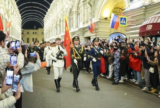 4月24日,被譽(yù)為“中國排面”的中國人民解放軍儀仗司禮大隊(duì)119名隊(duì)員抵達(dá)莫斯科,為參加5月9日紅場(chǎng)閱兵進(jìn)行準(zhǔn)備訓(xùn)練。5月7日,他們參加了日間總彩排。