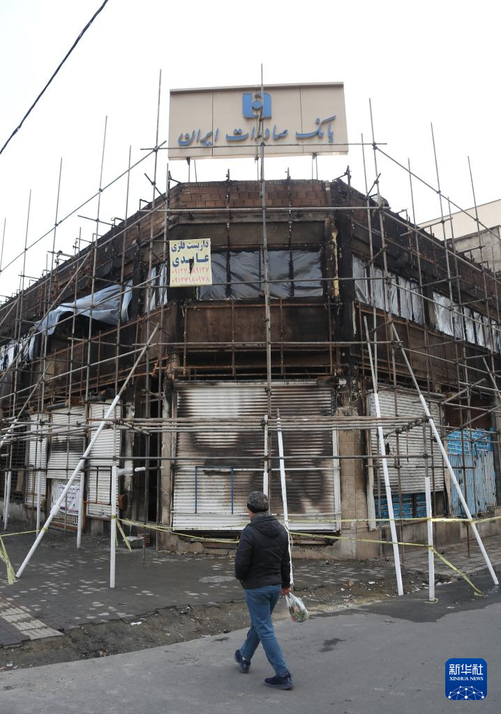這是1月21日在伊朗首都德黑蘭拍攝的在近期騷亂中受損的一處稅務(wù)局建筑。新華社記者 沙達(dá)提 攝