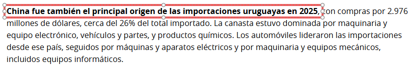 2025年,中國(guó)繼續(xù)保持烏拉圭第一大出口市場(chǎng)地位。根據(jù)烏拉圭二十一世紀(jì)投資和出口促進(jìn)局發(fā)布的年度外貿(mào)報(bào)告,2025年烏拉圭對(duì)華出口額達(dá)到34.93億美元,占烏拉圭出口總額的26%,較2024年增長(zhǎng)約12%。