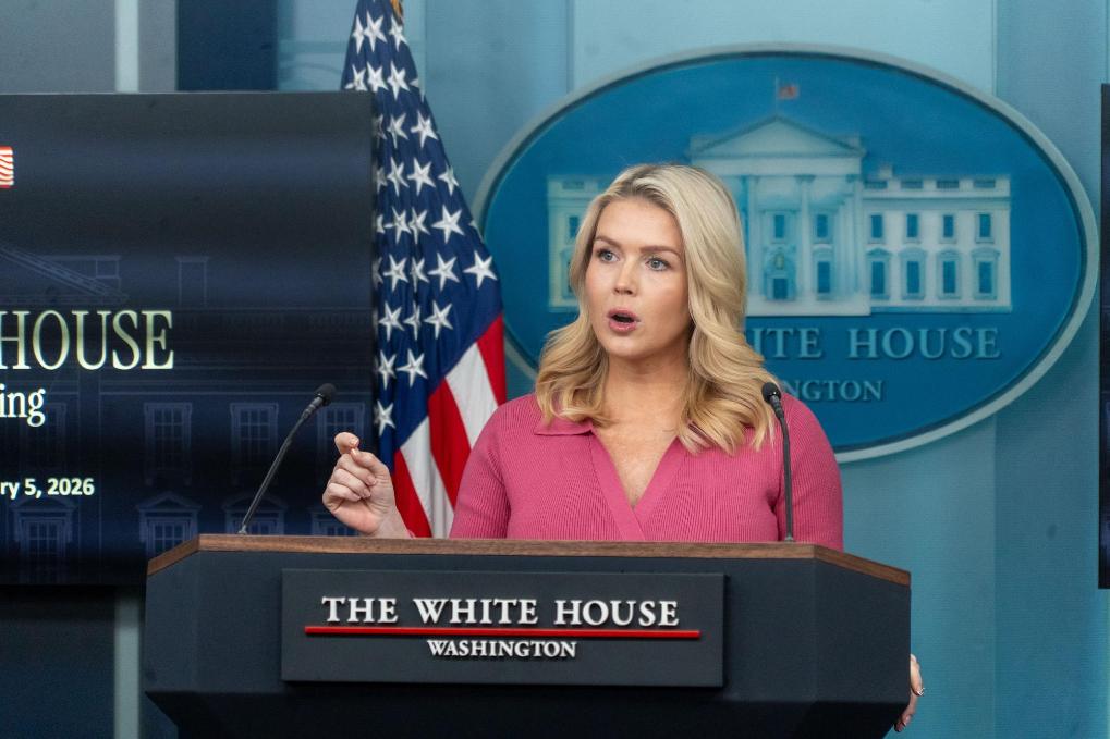 2月5日,在美國首都華盛頓白宮,白宮新聞秘書萊維特出席記者會。新華社發(fā)(李源清攝)