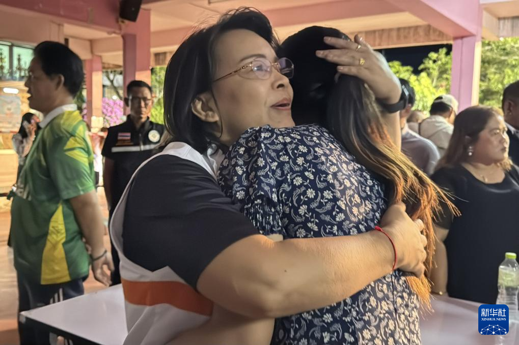 2月11日,兩名女子在泰國宋卡府合艾縣發(fā)生校園槍擊案的學(xué)?;ハ鄵肀?。新華社發(fā)