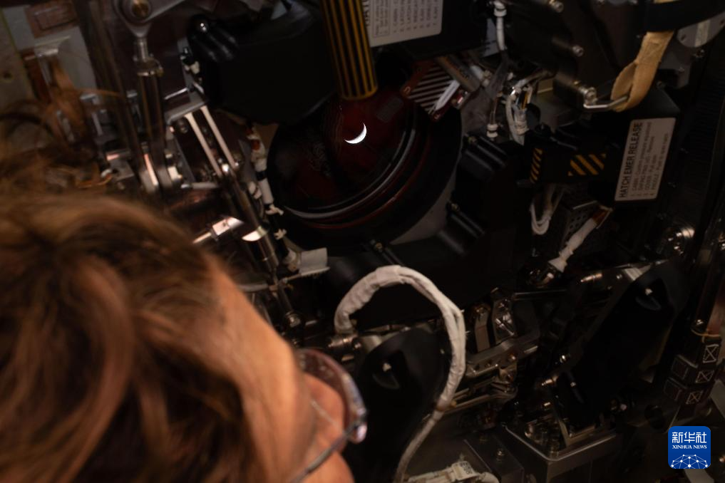 4月6日,美國航空航天局宇航員克里斯蒂娜·科克從執(zhí)行“阿耳忒彌斯2號”載人繞月飛行任務(wù)的“獵戶座”飛船上觀看地球。新華社發(fā)(美國國家航空航天局供圖)