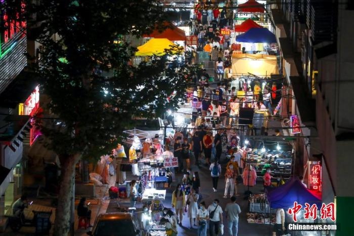 資料圖:6月3日,市民在武漢保成路夜市消費休閑。隨著復(fù)工復(fù)產(chǎn)復(fù)市持續(xù)推進,武漢傳統(tǒng)的街頭夜市熱鬧起來,不少市民前來消費休閑。 中新社記者 張暢 攝