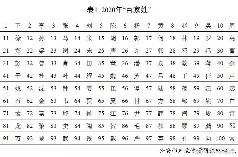 剛剛,公安部戶政管理研究中心二〇二〇年全國姓名報告發(fā)布。按戶籍人口數(shù)量排名,2020年的“百家姓”與2019年相比變化不大?!巴酢薄袄睢薄皬垺薄皠ⅰ薄瓣悺币琅f名列前五,五大姓氏人口總數(shù)占全國戶籍總?cè)丝诘?0.8%。截止到2020年12月31日,2020年出生并已經(jīng)到公安機(jī)關(guān)進(jìn)行戶籍登記的新生兒共1003.5萬,其中男孩529.0萬,占52.7%,女孩474.5萬,占47.3%。2020年“百家姓”中新生兒登記姓氏最多的是“李”,共72.6萬人。2020年出生并已經(jīng)進(jìn)行戶籍登記的女性新生兒中,使用頻率最高的10個名字依次為:“一諾”“依諾”“欣怡”“梓涵”“語桐”“欣妍”“可欣”“語汐”“雨桐”“夢瑤”。與2019年相比,“一諾”“依諾”“欣怡”依舊位列三甲,“語桐”“可欣”“語汐”“夢瑤”進(jìn)入前十。(記者 熊豐、任沁沁)